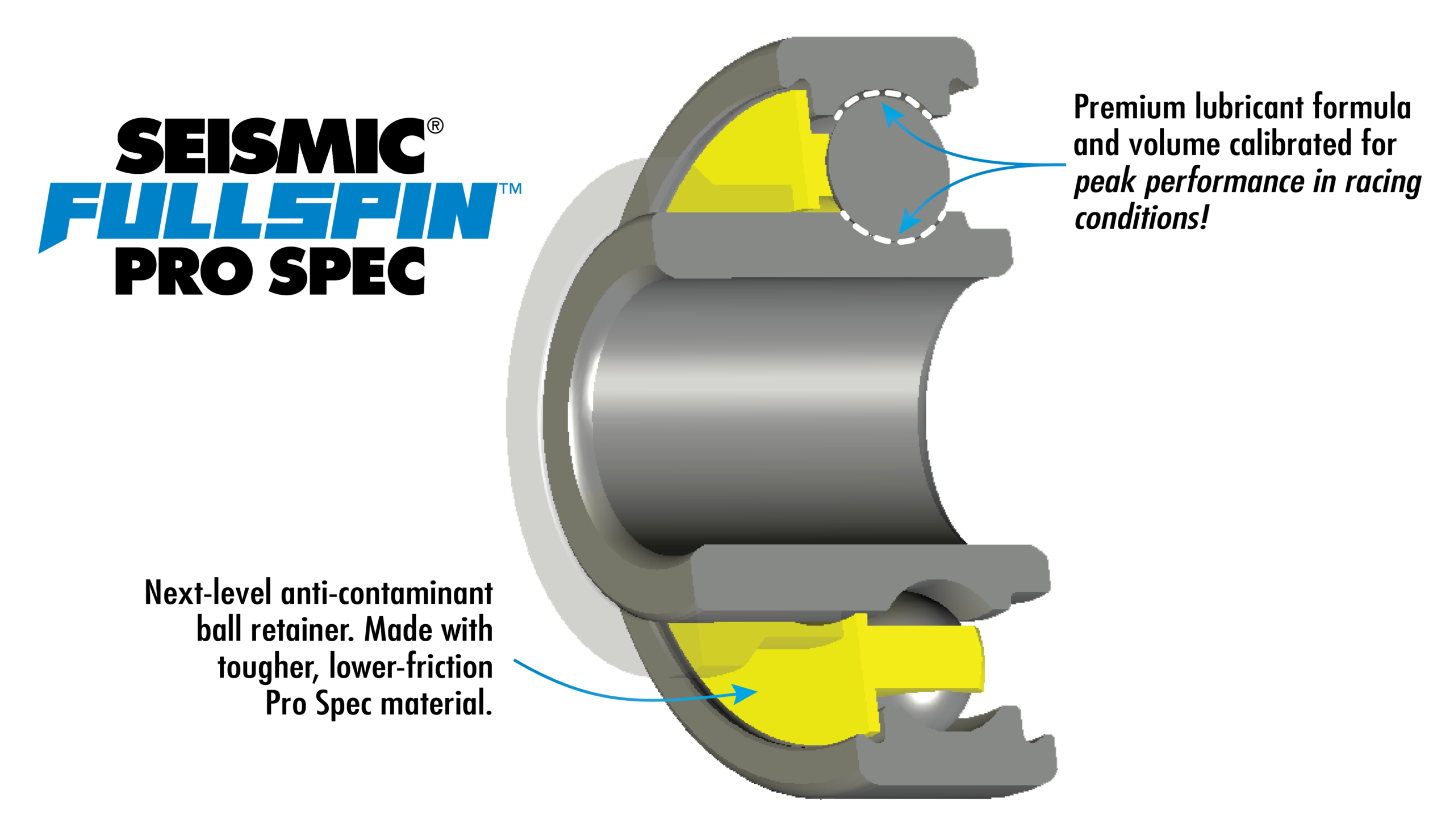 Next-level anti-contaminant ball retainers – Made with tougher, lower-friction Pro Spec material. Expanded outer diameter slots into groove in outer ring just like a second seal, to form a unique integral barrier against dirt and grime.